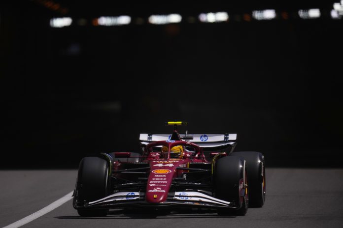 Ferrari driver Lewis Hamilton of Britain steers his car during the third free practice ahead of the Formula One Monaco Grand Prix race at the Monaco racetrack in Monaco, Saturday, May 24, 2025. AP/PTI(AP05_24_2025_000105B)