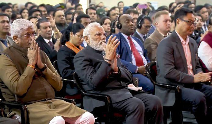 **EDS: THIRD PARTY IMAGE** In this screenshot from a video posted on Jan. 3, 2026, Prime Minister Narendra Modi with Union Ministers Gajendra Singh Shekhawat and Kiren Rijiju, and others during the inauguration of the grand exposition titled 'The Light and the Lotus: Relics of the Awakened One', at the Rai Pithora Cultural Complex, in New Delhi. The exposition showcases Buddha-linked Piprahwa relics, reliquaries and gem relics, recently repatriated to India. (@NarendraModi/YT via PTI Photo)(PTI01_03_2026_000244B)