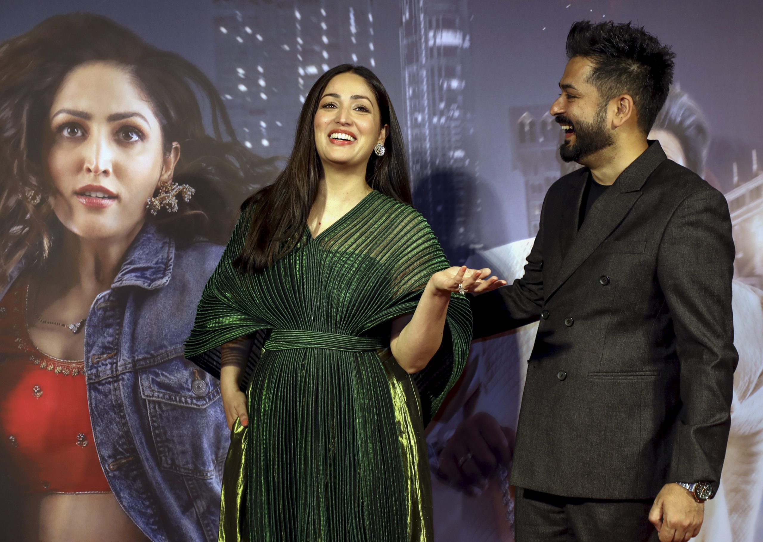 **EDS, YEARENDERS 2025: ENTERTAINMENT** Mumbai: Bollywood actor Yami Gautam, left, with her husband and filmmaker Aditya Dhar pose for photographs as they attend the screening of upcoming Netflix web series 'Dhoom Dhaam', in Mumbai, Feb. 12, 2025. (PTI Photo) (PTI02_13_2025_000129B)(PTI12_24_2025_000372B)