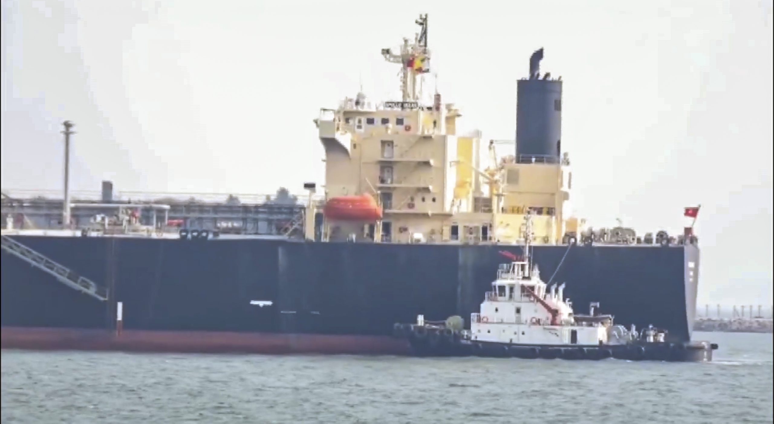 **EDS: SCREENGRAB VIA PTI VIDEOS** Mangaluru: Apollo Ocean, an LPG vessel from Qatar, carrying 17,600 metric tonnes of cargo, arrives at New Mangalore Port, in Mangaluru, Karnataka, Thursday, March 26, 2026. (PTI Photo) (PTI03_26_2026_000286B)