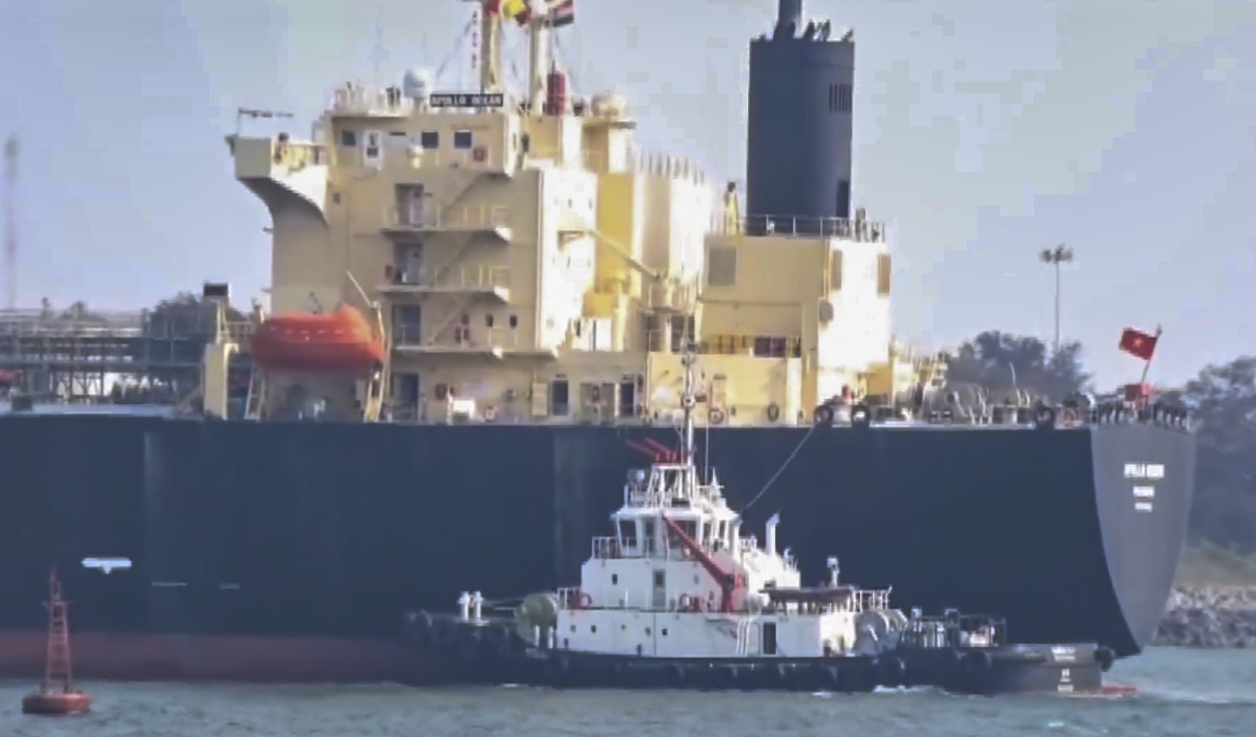 **EDS: SCREENGRAB VIA PTI VIDEOS** Mangaluru: Apollo Ocean, an LPG vessel from Qatar, carrying 17,600 metric tonnes of cargo, arrives at New Mangalore Port, in Mangaluru, Karnataka, Thursday, March 26, 2026. (PTI Photo) (PTI03_26_2026_000293B)
