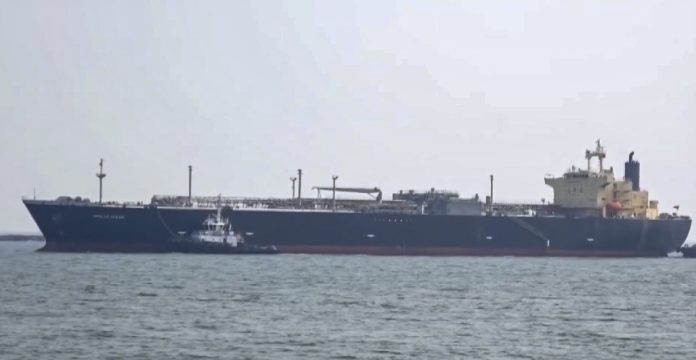 **EDS: SCREENGRAB VIA PTI VIDEOS** Mangaluru: Apollo Ocean, an LPG vessel from Qatar, carrying 17,600 metric tonnes of cargo, arrives at New Mangalore Port, in Mangaluru, Karnataka, Thursday, March 26, 2026. (PTI Photo) (PTI03_26_2026_000292B)