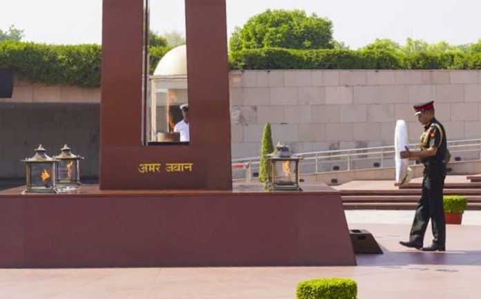 **EDS: THIRD PARTY IMAGE** In this image posted on April 1, 2026, Lieutenant General Anoop Shinghal lays a wreath at the National War Memorial, as he assumed the appointment of Director General of the Regiment of Artillery. (@adgpi/X via PTI Photo) (PTI04_01_2026_000323B)
