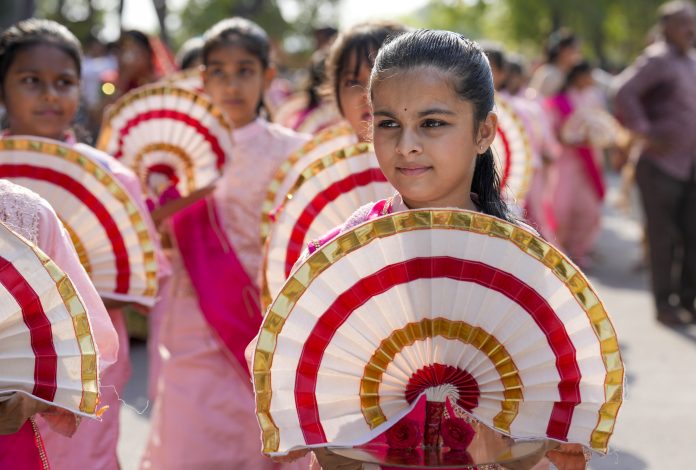 Chennai: Devotees take part in a religious procession on the occasion of Mahavir Jayanti, in Chennai, Thursday, April 10, 2025. (PTI Photo/R Senthilkumar)(PTI04_10_2025_000081B)