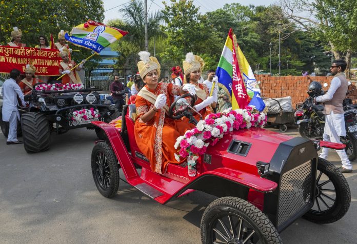 Bengaluru: People take part in a religious procession on the occasion of Mahavir Jayanti in Bengaluru, Karnataka, Thursday, April 10, 2025. (PTI Photo/Shailendra Bhojak) (PTI04_10_2025_000134B)