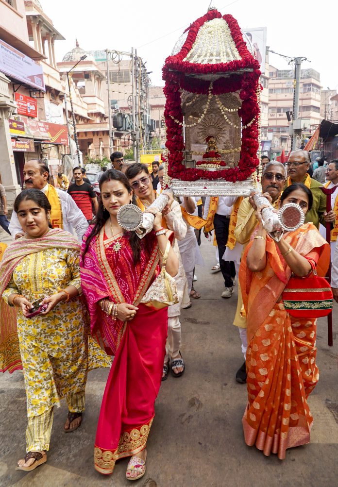 Varanasi: People take out a procession on ‘Mahavir Jayanti’, in Varanasi, Uttar Pradesh, Tuesday, March 31, 2026. (PTI Photo) (PTI03_31_2026_000043B)
