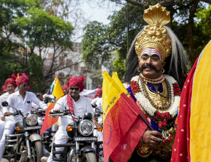 Bengaluru: Folk artists perform during a procession on the occasion of Mahavir Jayanti, in Bengaluru, Karnataka, Tuesday, March 31, 2026. (PTI Photo/Shailendra Bhojak)(PTI03_31_2026_000052B)