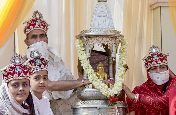 Chikkamagaluru: People take out a procession on ‘Mahavir Jayanti’, in Chikkamagaluru, Karnataka, Tuesday, March 31, 2026. (PTI Photo)(PTI03_31_2026_000244B)