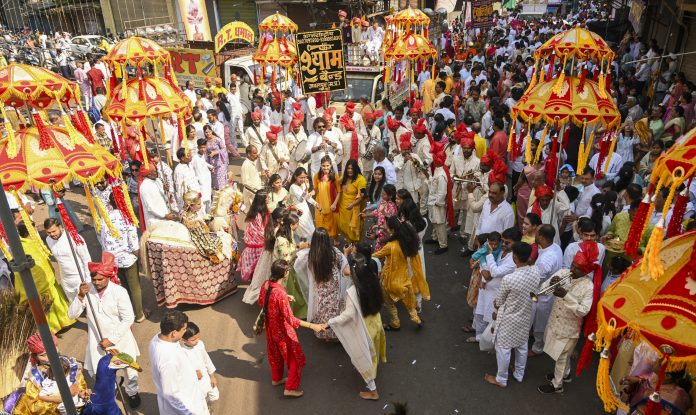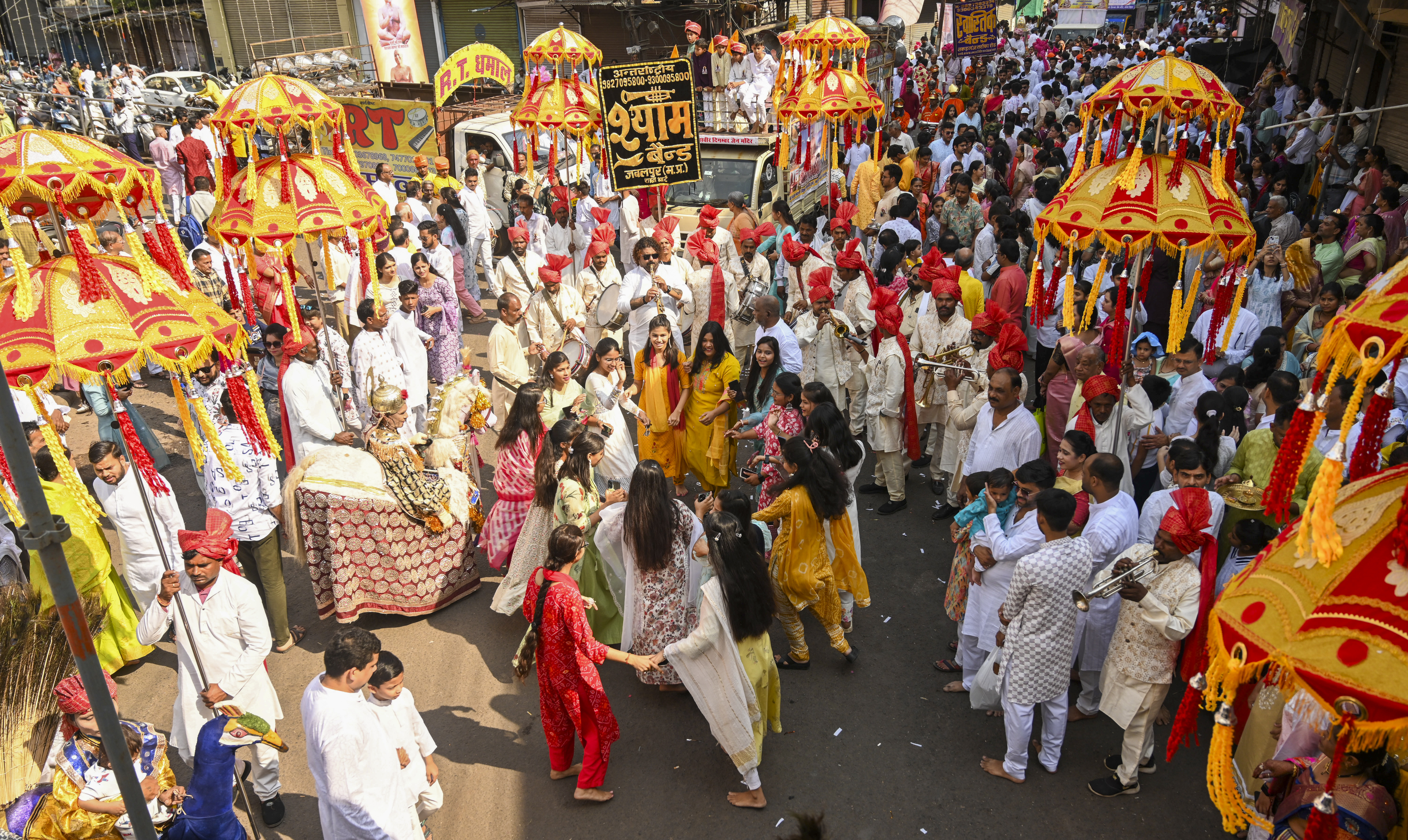 Jabalpur: Jain devotees participate in a procession celebrating Mahavir Jayanti, in Jabalpur, Thursday, Apr. 10, 2025. (PTI Photo) (PTI04_10_2025_000050B)