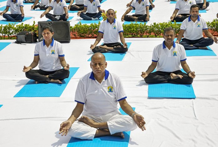 UPSC members Sanjay Verma, Anuradha Prasad, Bidyut Behari Swain, and secretary Shashi Ranjan Kumar performed yoga to mark the occasion.
