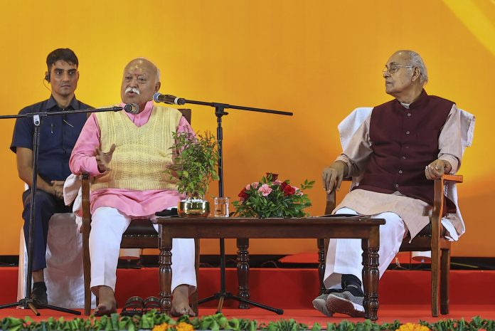 Jaipur: RSS chief Mohan Bhagwat during the 'Deendayal Smriti Vyakhyan' programme, in Jaipur, Saturday, Nov. 15, 2025. (PTI Photo)(PTI11_15_2025_000480B)