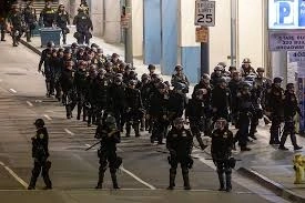 There have been about 500 arrests since Saturday, mostly for failing to leave the area at the request of law enforcement, according to police. There have been a handful of more serious charges, including for assault against officers and for possession of a Molotov cocktail and a gun. Nine officers have been hurt, mostly with minor injuries.