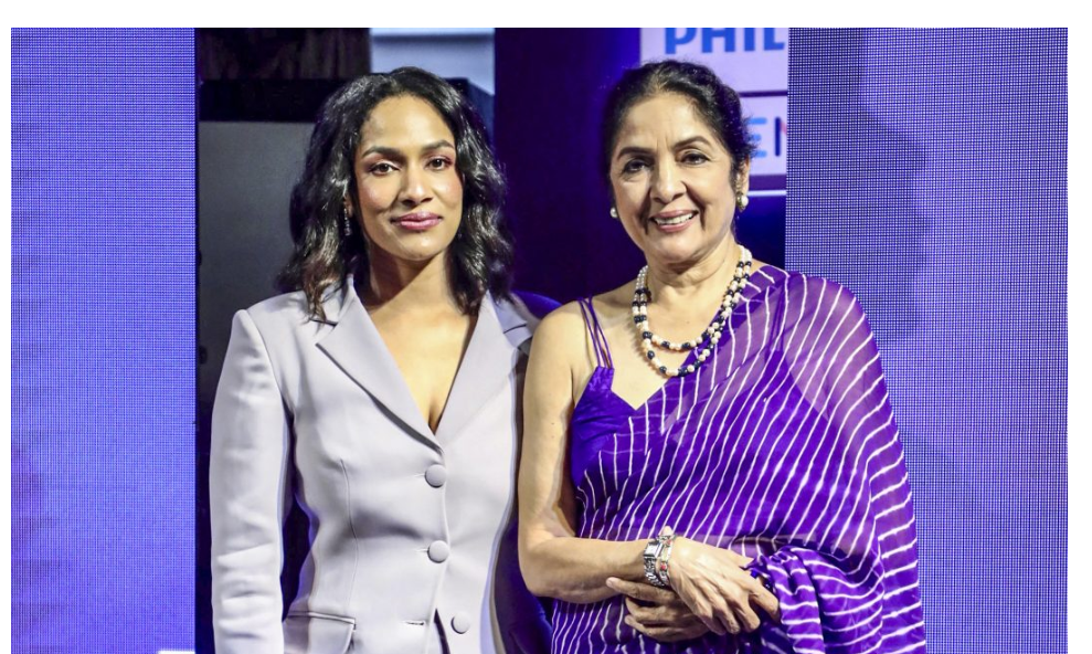 Mumbai: Veteran actor Neena Gupta with her daughter and fashion designer Masaba Gupta at an event, in Mumbai, Thursday, Aug. 7, 2025. (PTI Photo)(PTI08_08_2025_000018B)