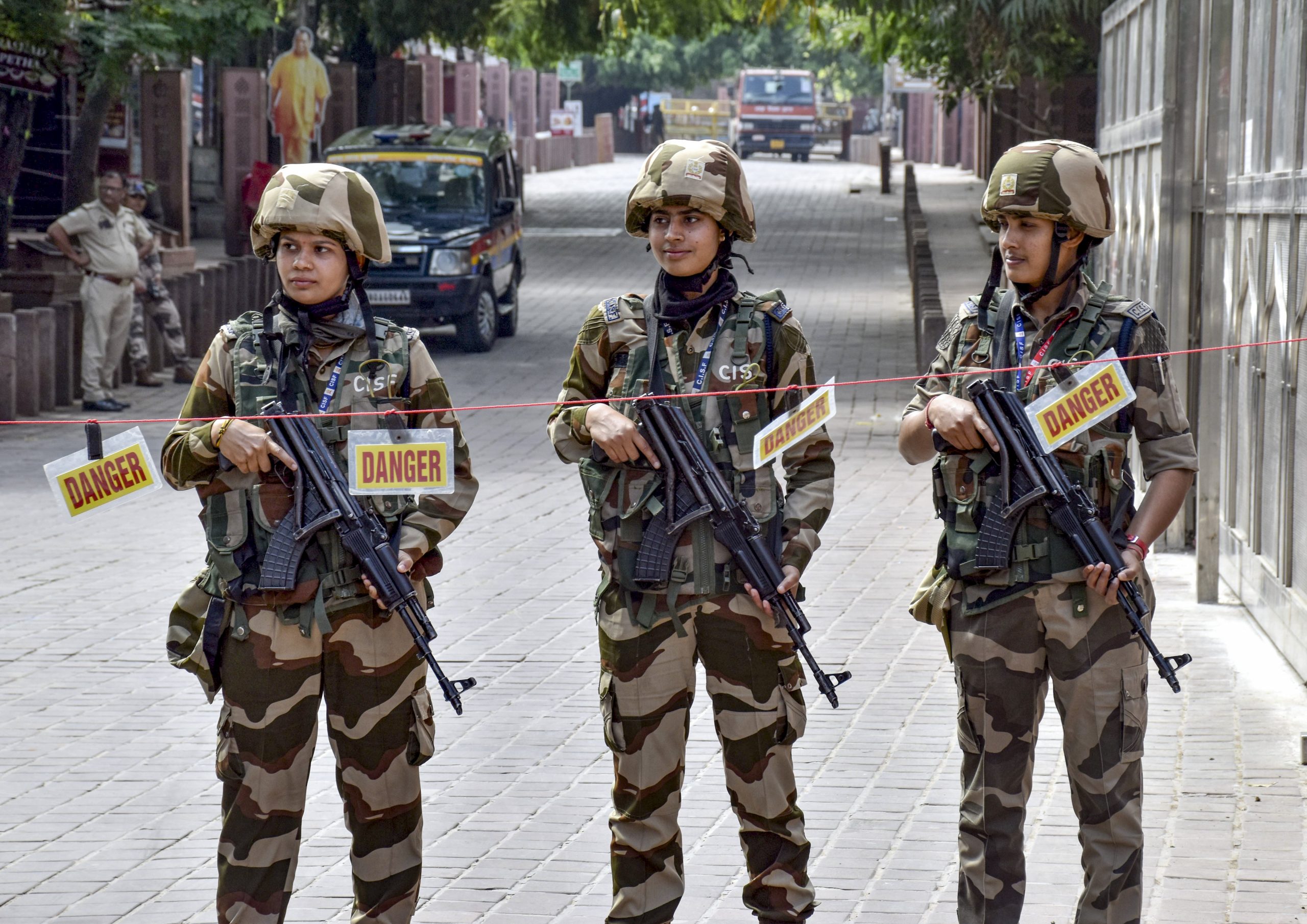 Agra: Central Industrial Security Force personnel during a mock drill, near Taj Mahal, in Agra, Friday, March 27, 2026. (PTI Photo) (PTI03_27_2026_000208B)