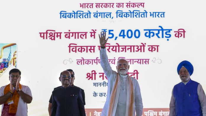 Taking a swipe at the TMC, Left and Congress, the Prime Minister said: “For years, the TMC and Left ran the government in Delhi with Congress but never considered recognising Bangla, whereas it was the BJP government that granted it classical language status.” Recalling the time when Bengal attracted job-seekers from across the country, he said people used to come here from across India for employment, but today, the youth of Bengal are forced to migrate even for small jobs.