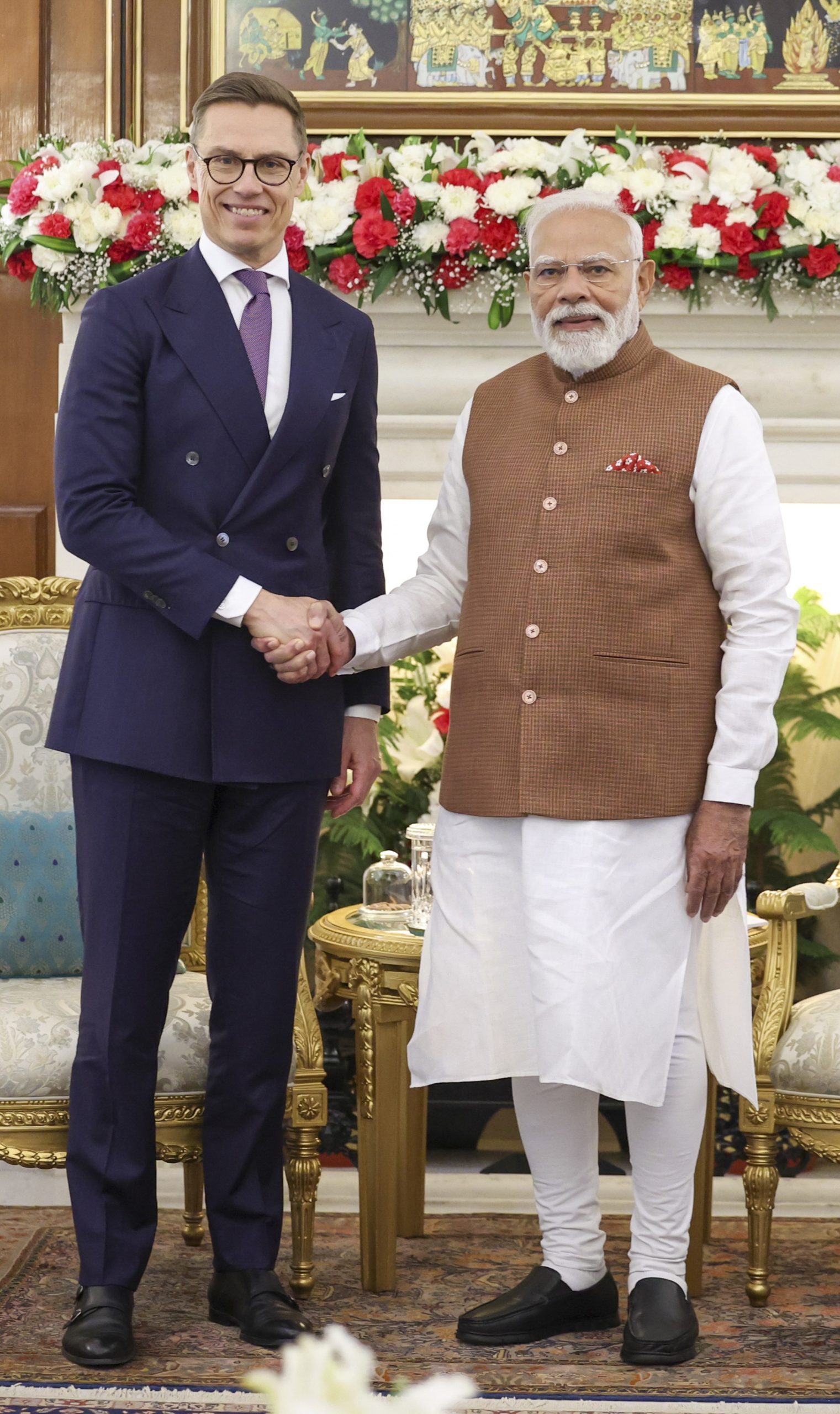 **EDS: THIRD PARTY IMAGE** In this image received on March 5, 2026, Prime Minister Narendra Modi with Finland President Alexander Stubb during a bilateral meeting, at Hyderabad House in New Delhi. (PMO via PTI Photo) (PTI03_05_2026_000117B)