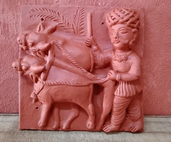 Each Molela plaque is handcrafted by the Kumhar (potter) community, using local alluvial clay mixed with donkey dung and wheat husk. The process includes:
