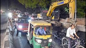 New Delhi, May 15 (PTI) Traffic movement in parts of New Friends Colony in southeast Delhi was thrown into disarray on Thursday evening after mounds of silt from a drain-cleaning drive were dumped along the C V Raman Marg, choking a key arterial road and triggering a massive jam that is likely to spill over into Friday, an official said.