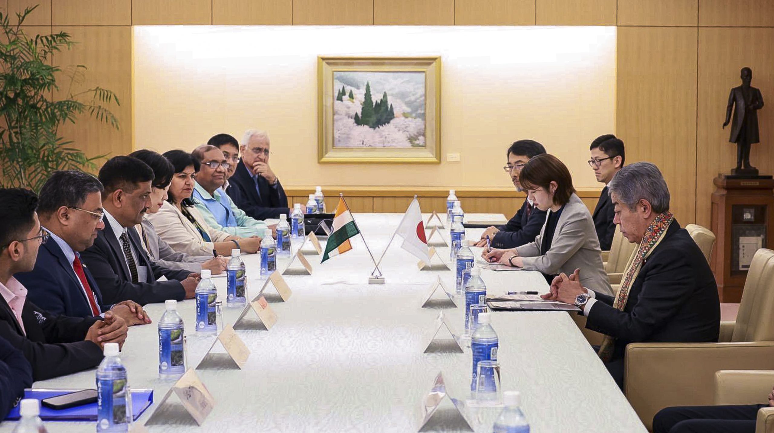 **EDS: THIRD PARTY** In this image provided by PIB on May 22, 2025, an all-party parliamentary delegation from India, led by MP Sanjay Kumar Jha, meets Japan's Foreign Minister Takeshi Iwaya, reaffirming Indias national consensus and commitment to combat terrorism, in Tokyo. The Japanese minister reiterated his country's support for India's anti-terror efforts and called for action against perpetrators. (PIB via PTI Photo) (PTI05_22_2025_000592B)