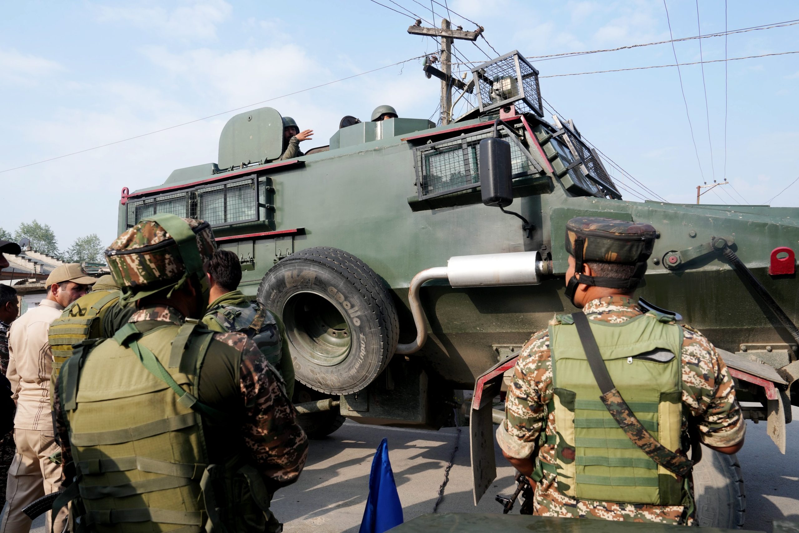 Pulwama: Security personnel during a search operation after India struck nine terror targets in Pakistan & PoK, at Pampore in Pulwama district, J&K, Wednesday, May 7, 2025. In retaliation for the Pahalgam terror attack, Indian armed forces carried out missile strikes early Wednesday on nine terror targets in Pakistan and Pakistan-Occupied Kashmir including the Jaish-e-Mohammad stronghold of Bahawalpur and Lashkar-e-Taiba's base Muridke, under 'Operation Sindoor' .(PTI Photo/S Irfan) (PTI05_07_2025_000051B)