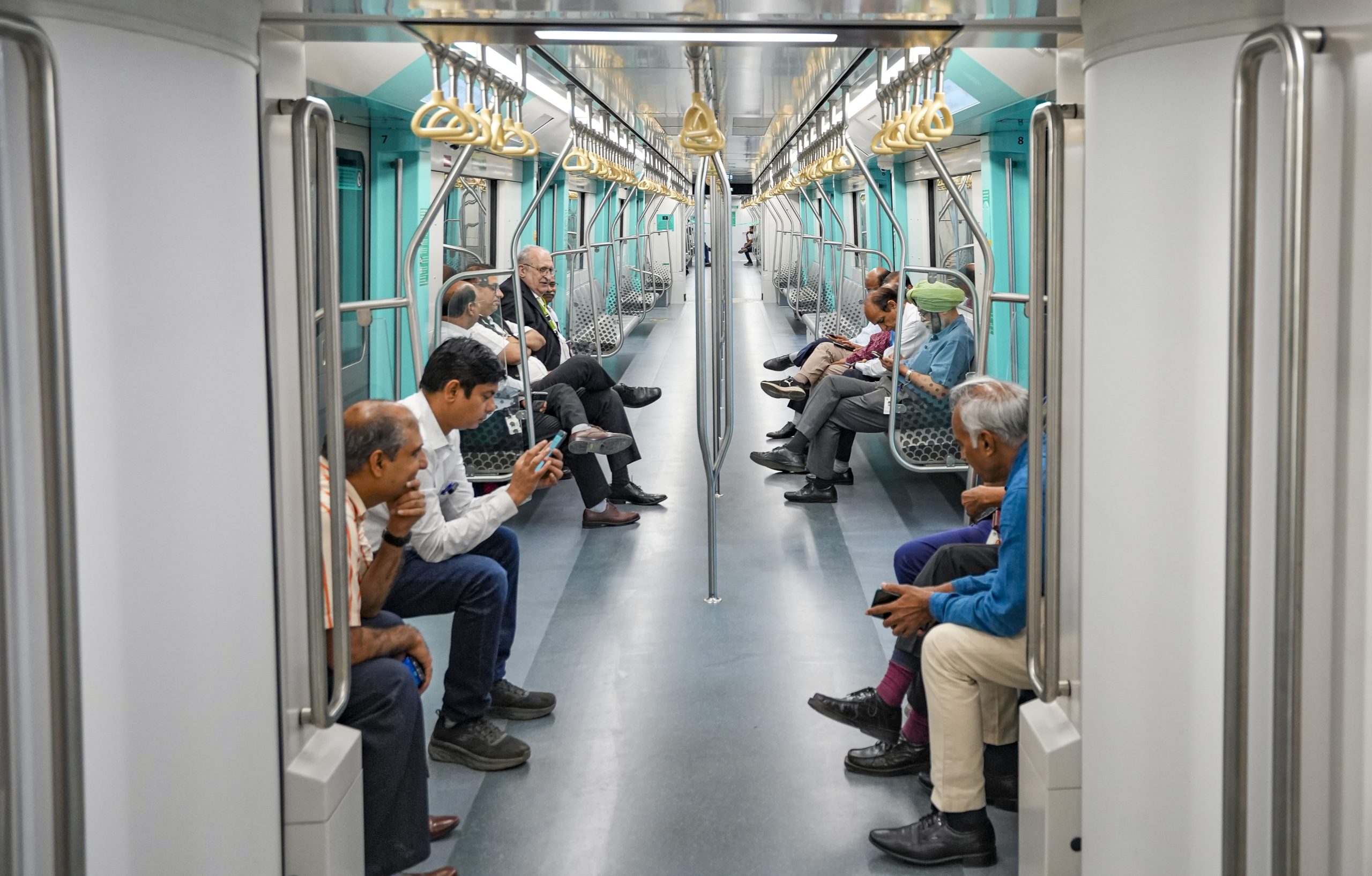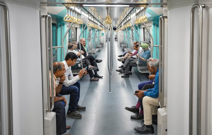 Mumbai: People take ride in a metro train after inauguration of the BKC-Worli stretch of the Mumbai Metro Aqua Line-3, in Mumbai, Friday, May 9, 2025. (PTI Photo/Kunal Patil) (PTI05_09_2025_000206B)
