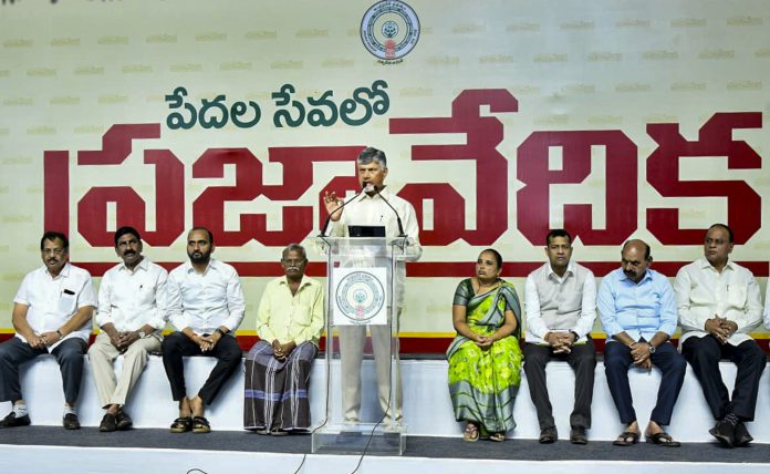 **EDS: THIRD PARTY IMAGE** In this image posted on April 1, 2026, Andhra Pradesh Chief Minister Nara Chandrababu Naidu addresses the “In the Service of the Poor” event, in Nellore. (@AndhraPradeshCM/X via PTI Photo) (PTI04_01_2026_000341B)
