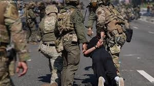 On Tuesday, a few dozen protesters gathered peacefully in front of the federal complex, which was quickly declared an unlawful assembly. Police issued a dispersal order and corralled the protesters, telling members of the media to stay out to avoid getting hurt. Officers with zip ties then started making arrests.
