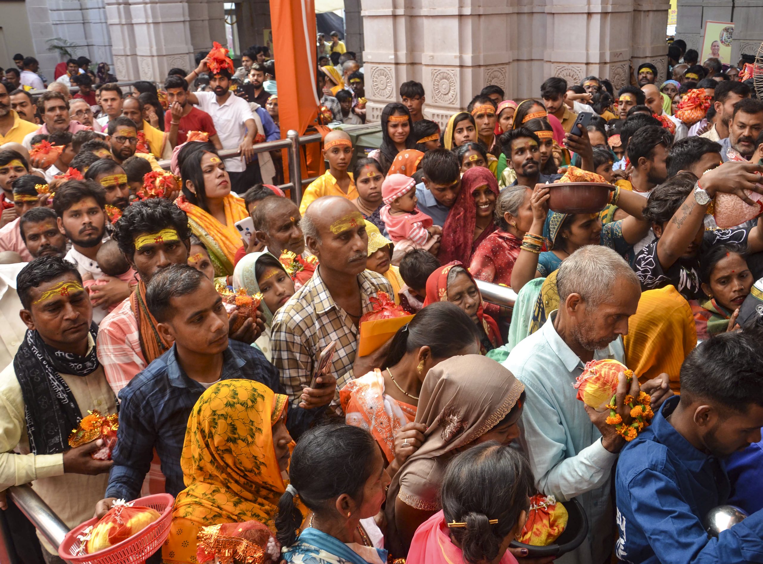 Mirzapur: People gather at the ‘Vindhyavasini temple’ to perform rituals on the last day of the ‘Navaratri’ festival, in Mirzapur, Uttar Pradesh, Friday, March 27, 2026. (PTI Photo)(PTI03_27_2026_000028B)