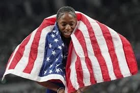 “I didn’t do it just because he was my dad, but I wanted to be able to say, If I had an opportunity to help someone, do it,’” Jefferson-Wooden said. “And that’s what life is about.” Wooden’s mom and dad, Johanna and Melvin Jefferson, were in the box with World Athletics President Seb Coe to watch their daughter make history. The Jefferson family travels deep, and Wooden-Jefferson said it’s been rewarding to have mom and dad and aunts and uncles in Tokyo.