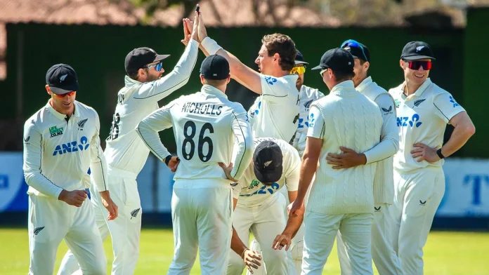 New Zealand had earlier declared its first innings at the overnight monumental 601-3 with Rachin Ravindra (165 not out) and Henry Nicholls (150 not out) combining in a blazing 256-run fourth-wicket stand.