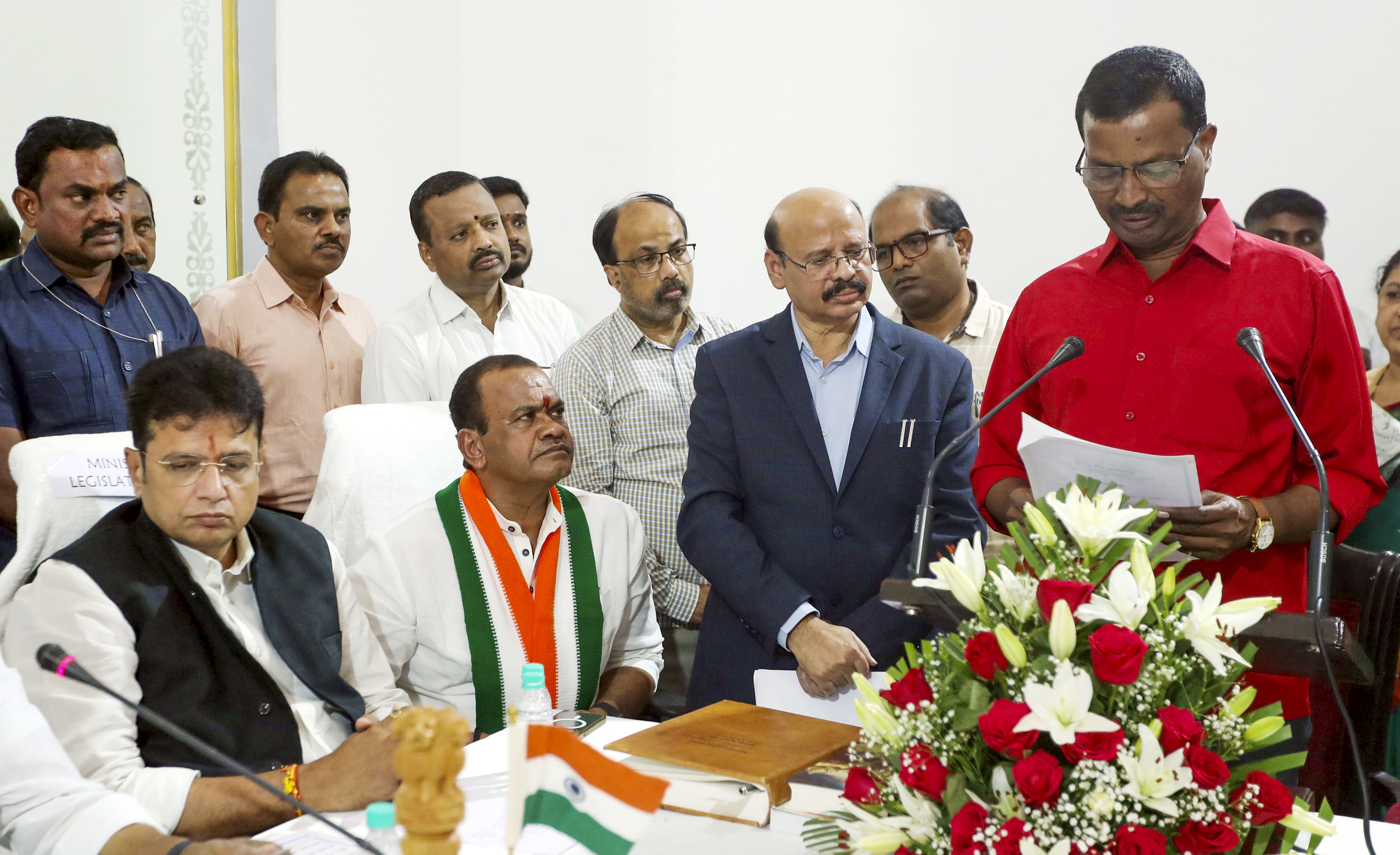 Hyderabad: CPI leader Nellikanti Satyam takes oath as MLC, in Hyderabad, Monday, April 7, 2025. (PTI Photo)(PTI04_07_2025_000441B)