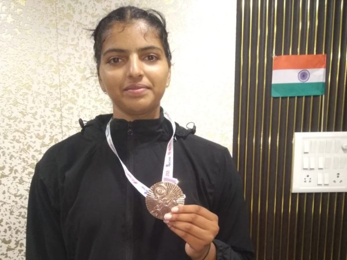 Having won four silver and three bronze medals from the swimming pool, Chhattisgarh sports fan were waiting for a gold from their athletes and Nikita fulfilled their wish with a dominating performance in women’s 77kg category at the open ground in Pt Ravishankar University here.