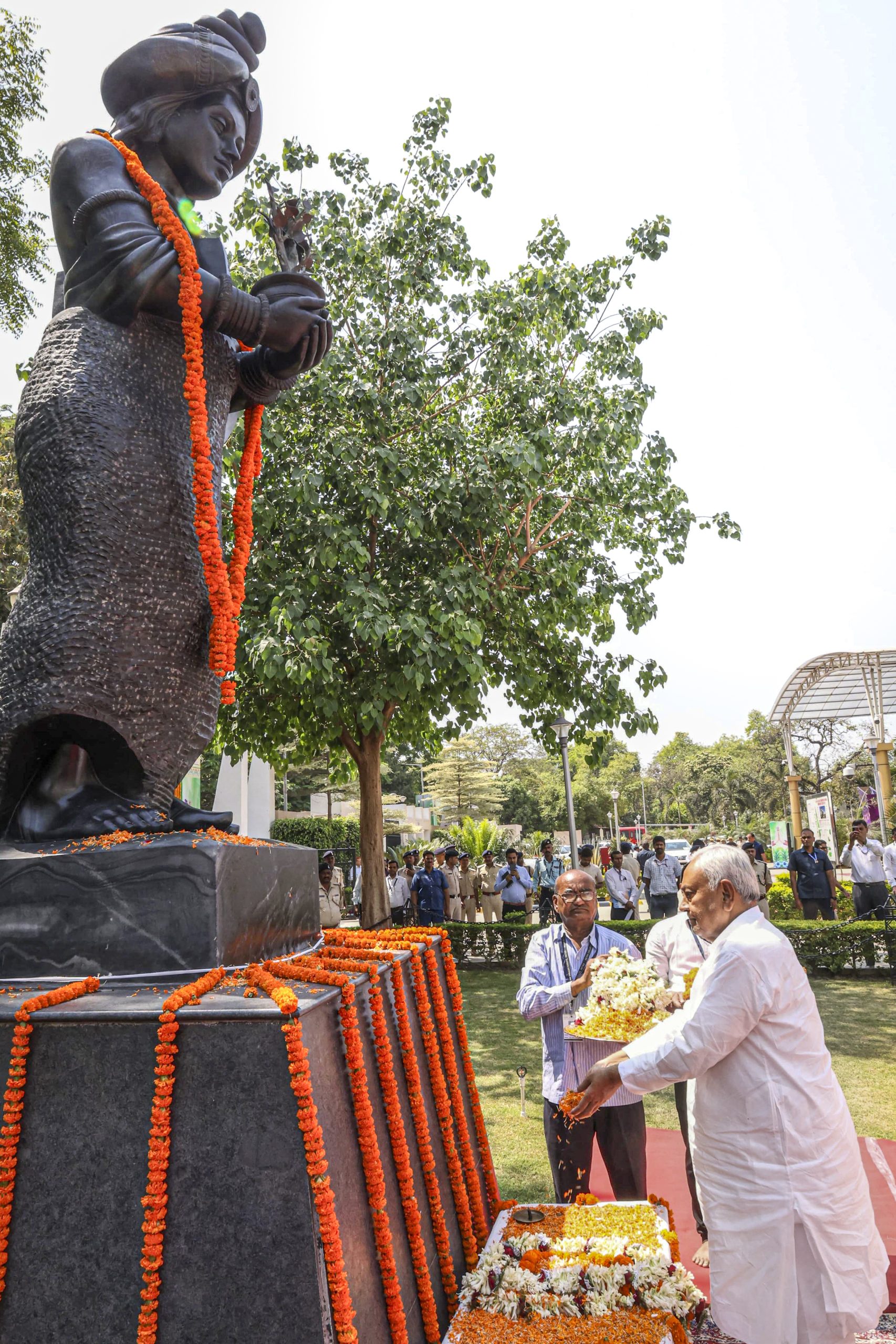 Patna: Bihar Chief Minister Nitish Kumar pays tribute during the Samrat Ashok Jayanti, in Patna, Thursday, March 26, 2026. (PTI Photo) (PTI03_26_2026_000240B)