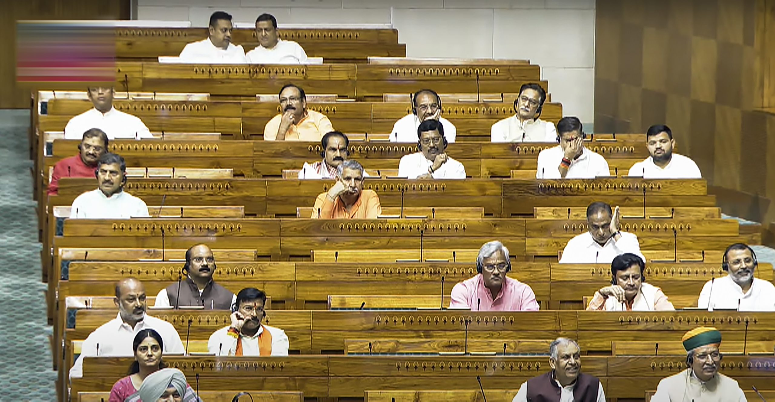 **EDS: THIRD PARTY IMAGE; SCREENGRAB VIA SANSAD TV** New Delhi: Minister of State Arjun Ram Meghwal with other MPs attend proceedings in the Lok Sabha during the Monsoon session of Parliament, in New Delhi, Tuesday, July 22, 2025. (Sansad TV via PTI Photo)(PTI07_22_2025_000093B)