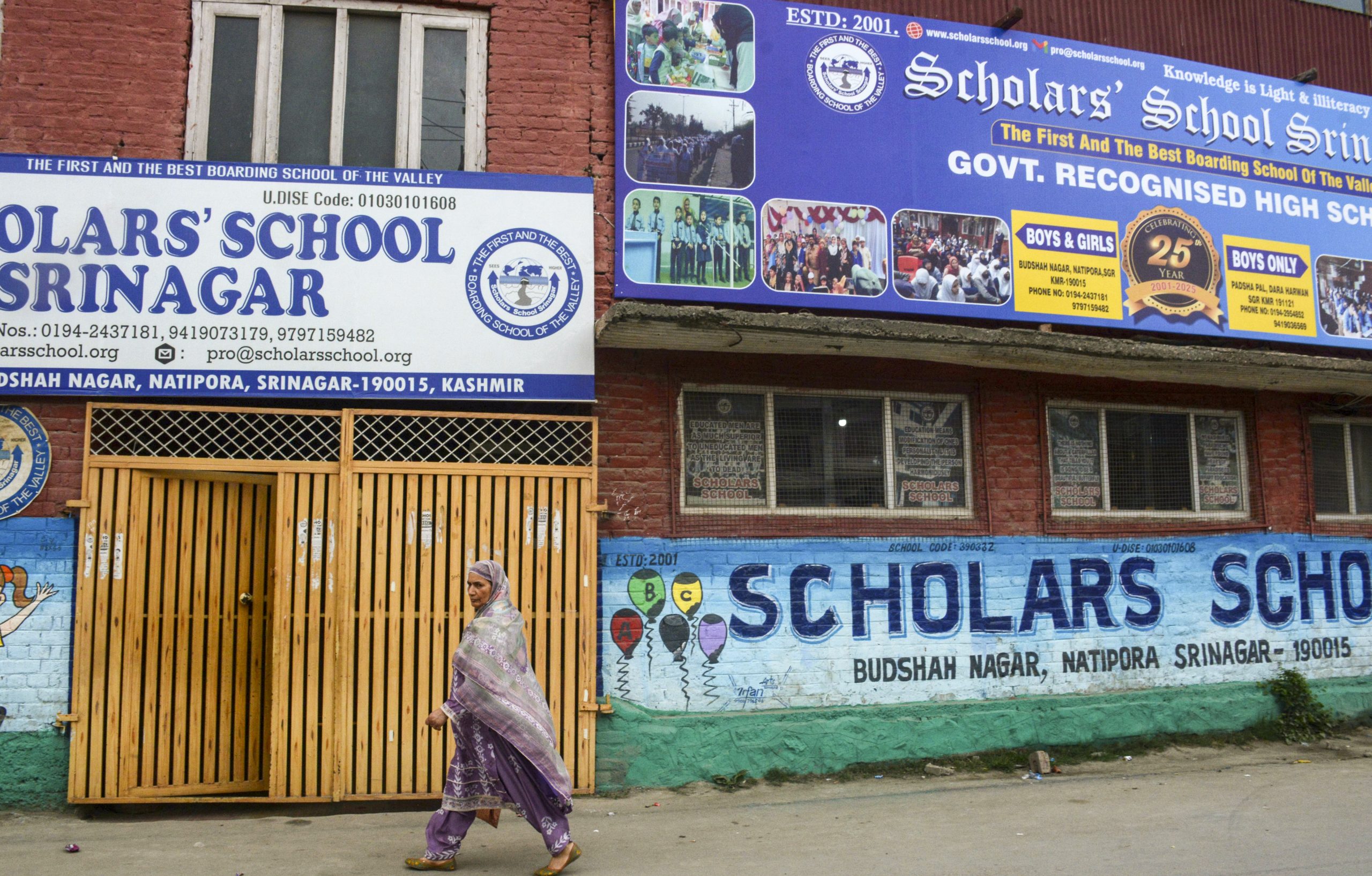 **EDS: TO GO WITH STORY** Srinagar: A woman walks past a school after authorities closed all schools and colleges across Jammu and Kashmir, amid escalating tensions between India and Pakistan, in Srinagar, Friday, May 9, 2025. (PTI Photo)(PTI05_09_2025_000227B)