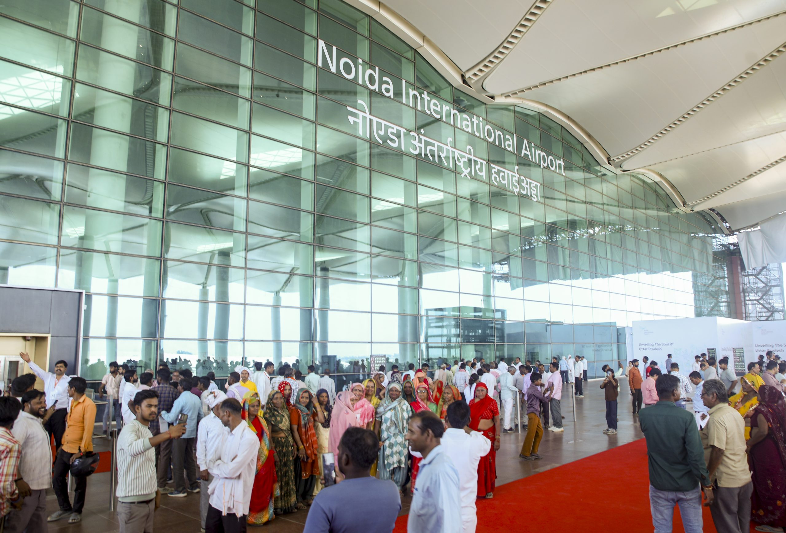 Noida: People gather at the newly constructed Noida International Airport after its inauguration by Prime Minister Narendra Modi, unseen, in Jewar, Gautam Buddha Nagar district, Uttar Pradesh, Saturday, March 28, 2026. (PTI Photo)(PTI03_28_2026_000126B)