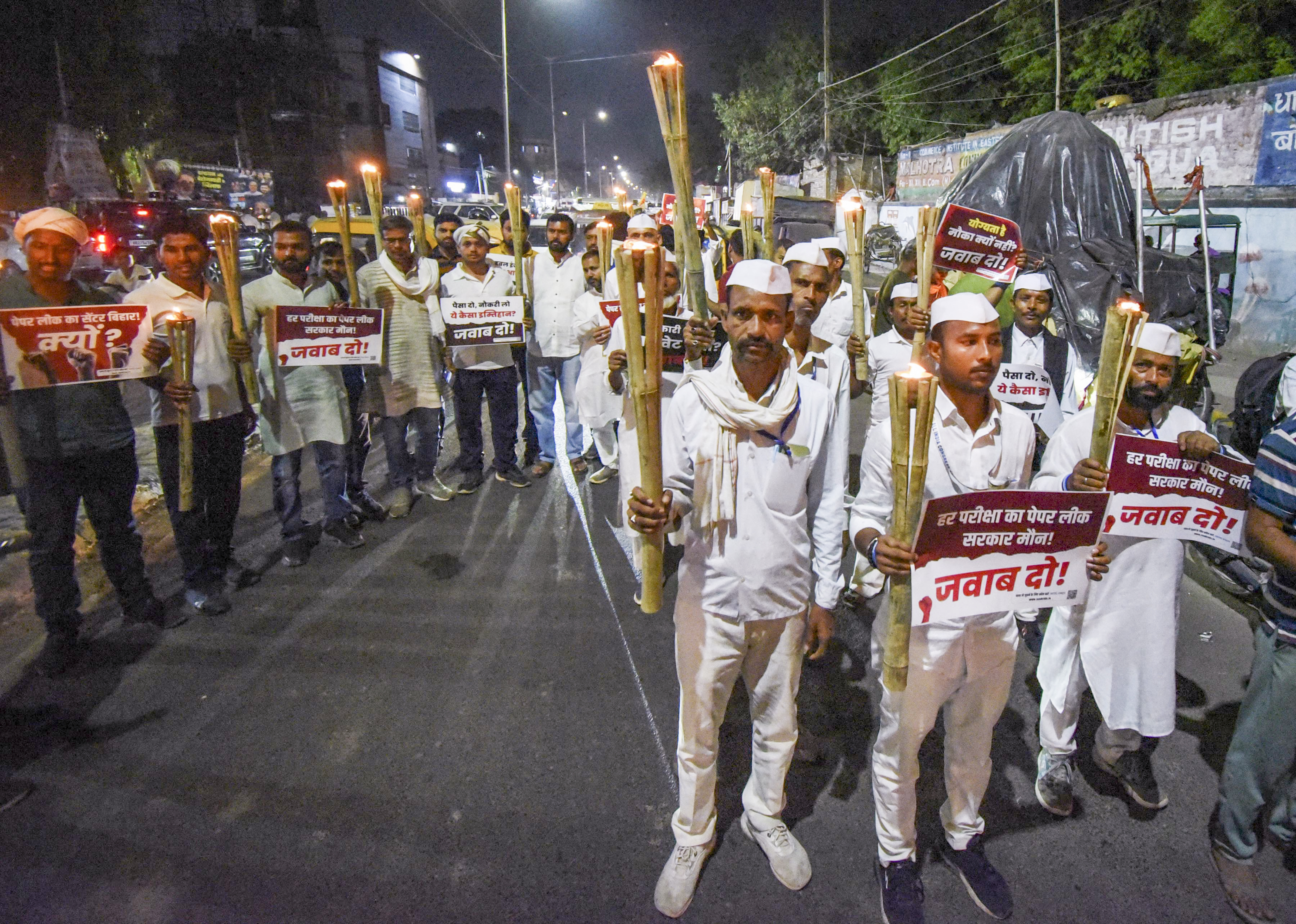 Patna: NSUI and Youth Congress activists during a torch procession against migration, unemployment, paper leak and recruitment scams issue, in Patna, Wednesday, April 9, 2025. (PTI Photo) (PTI04_09_2025_000642B)