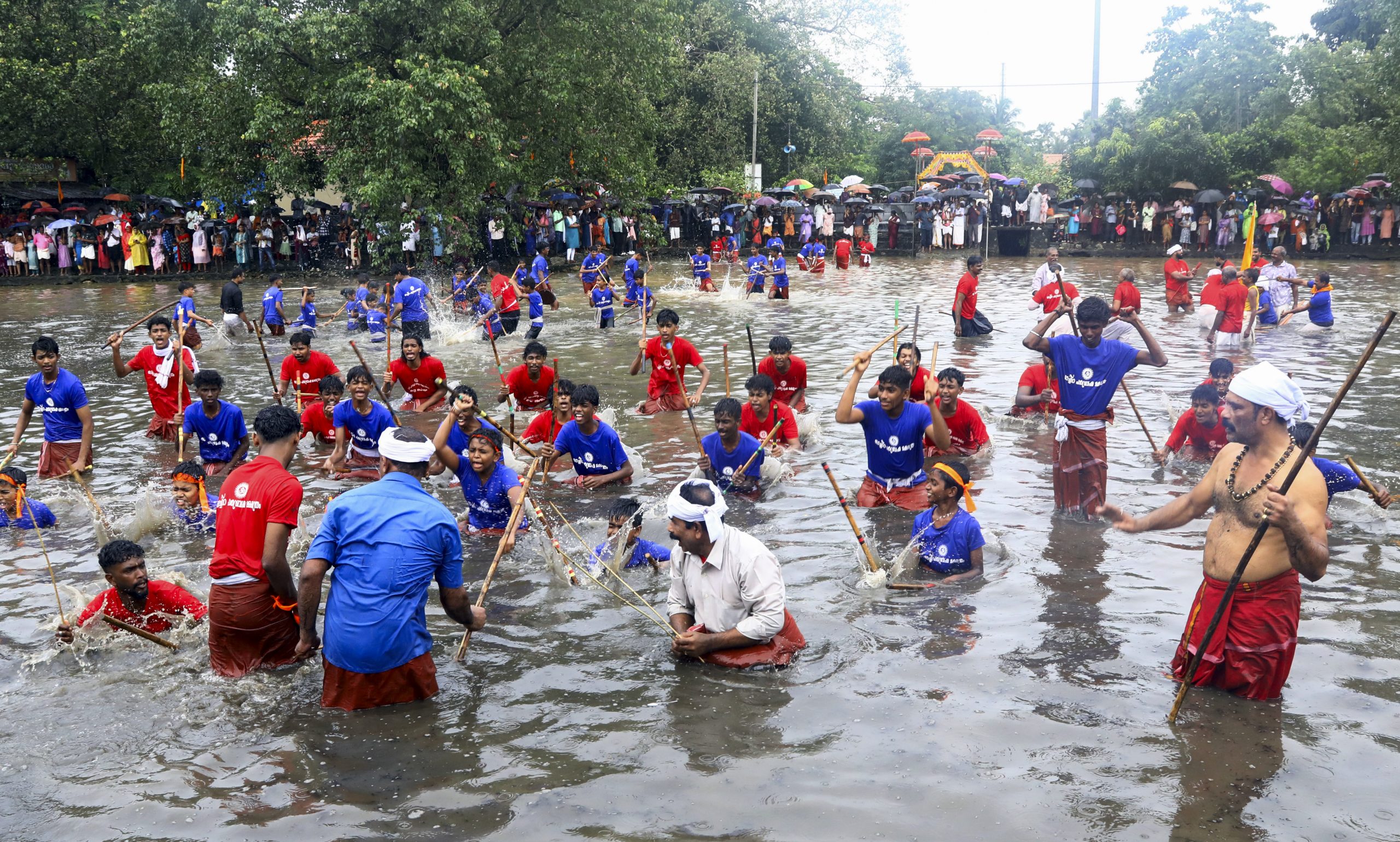 Celebrated on the first and second days of Mithunam (mid-June), Ochira Kali is a mock battle that commemorates a historical conflict between the kingdoms of Kayamkulam and Travancore. The battlefield, called padanilam, transforms into a muddy arena where hundreds of participants engage in choreographed duels.