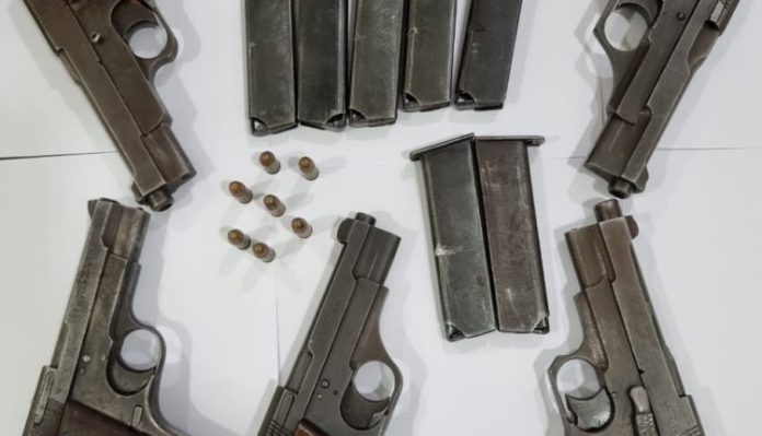 During the search huge quantity of manufacturing materials of 7 mm pistols were seized from the possession of the accused persons. Five accused persons were arrested.