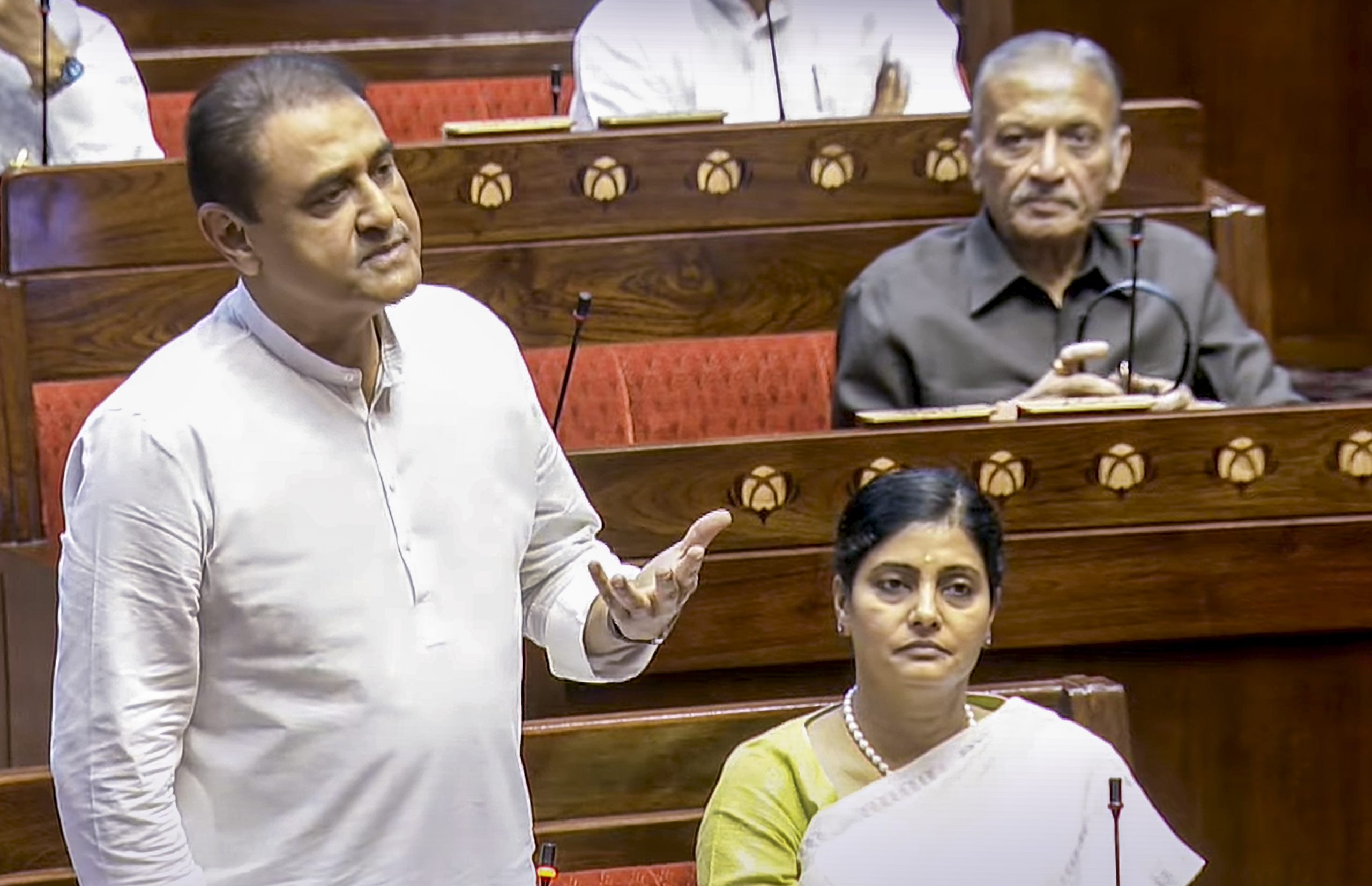 **EDS: THIRD PARTY IMAGE, SCREENGRAB VIA SANSAD TV** New Delhi: NCP MP Praful Patel speaks in the Rajya Sabha during the Monsoon session of Parliament, in New Delhi, Tuesday, Aug. 12, 2025. (Sansad TV via PTI Photo)(PTI08_12_2025_000199B)