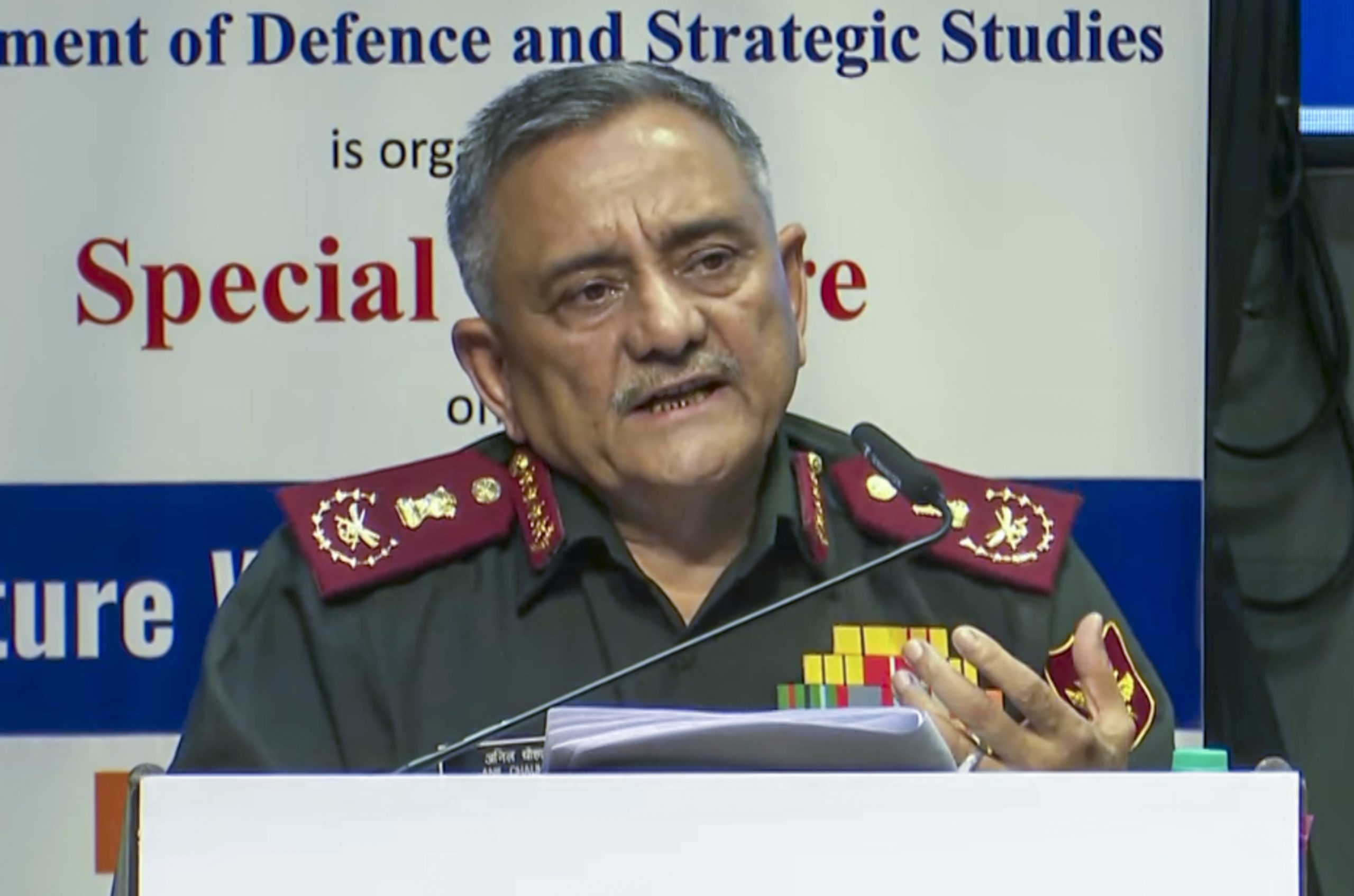 **EDS: SCREENSHOT VIA PTI VIDEOS** Pune: Chief of Defence Staff General Anil Chauhan delivers a lecture on 'Future Wars and Warfare' at Savitribai Phule Pune University, in Pune, Maharashtra, Tuesday, June 3, 2025. (PTI Photo)(PTI06_03_2025_000117B)