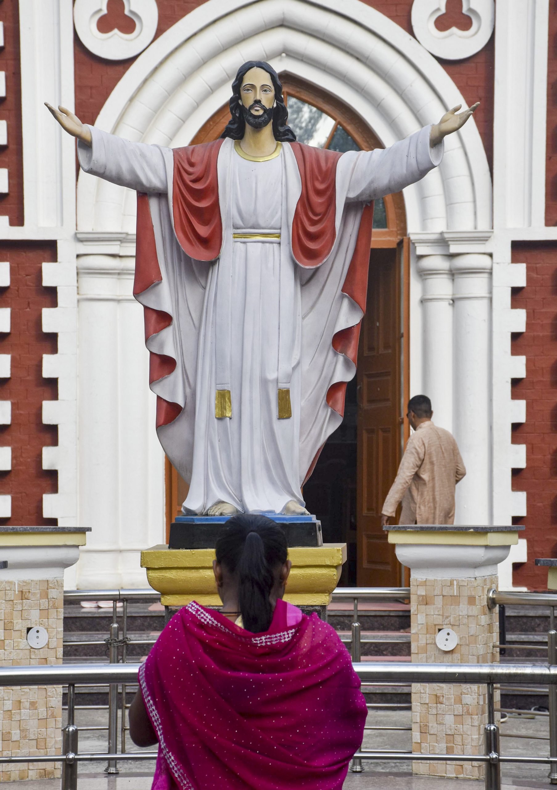 Moradabad: A woman offers prayers during a procession on the occassion of Palm Sunday, in Moradabad, Uttar Pradesh, Sunday, March 29, 2026. Palm Sunday marks the beginning of Holy Week and commemorates the entry of Jesus Christ into Jerusalem. (PTI Photo)(PTI03_29_2026_000036B)