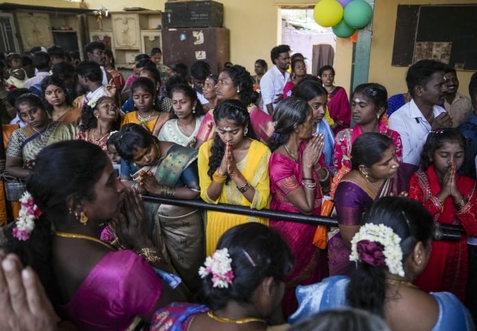 New Delhi: Devotees offer prayers during a procession on the �Panguni Uthiram� festival, honouring the Hindu God Murugan in the Tamil month of Panguni, in New Delhi, Wednesday, April 1, 2026. (PTI Photo/Arun Sharma)(PTI04_01_2026_000293B)