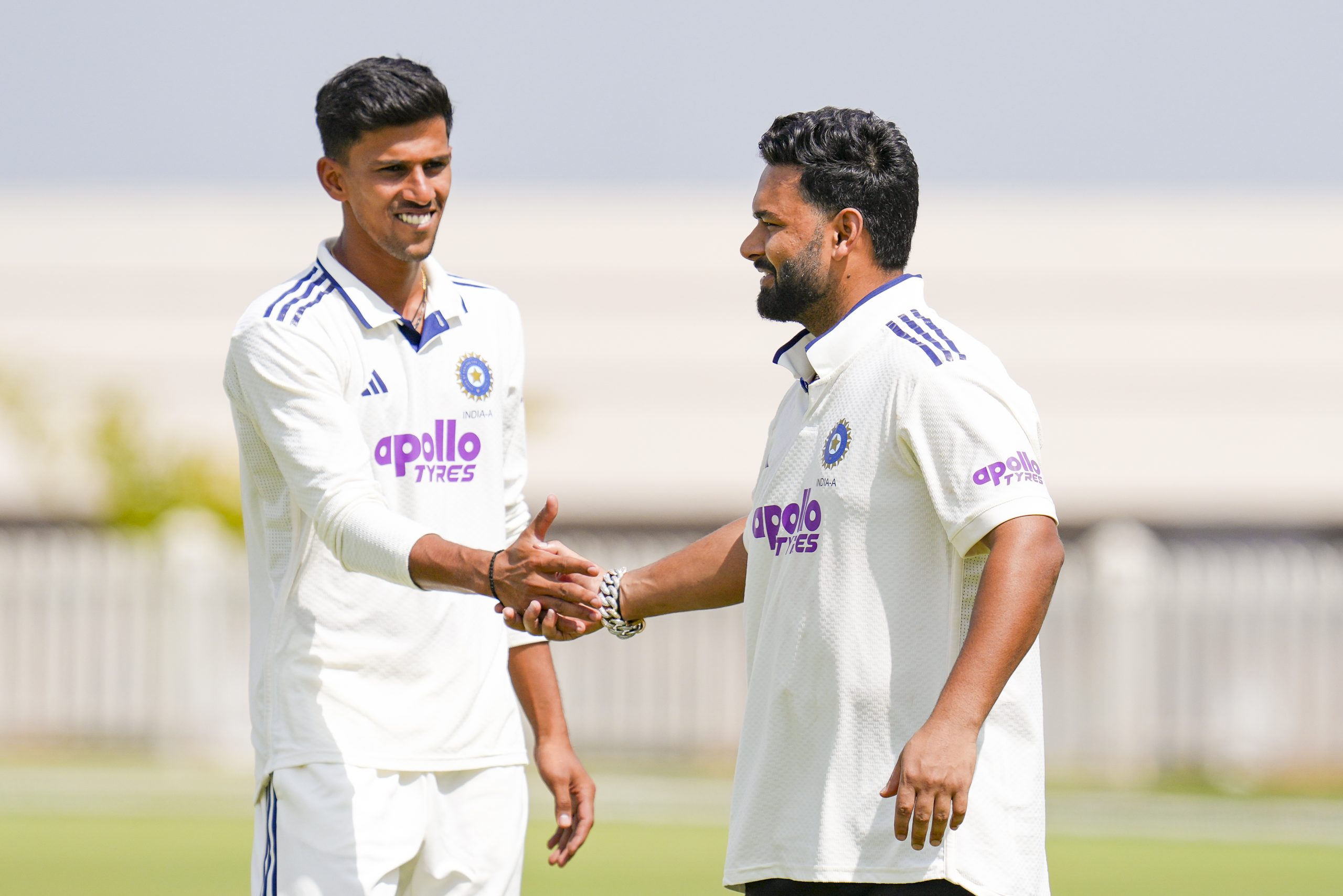 Bengaluru: India A’s captain Rishabh Pant exchanges a handshake with teammate Tanush Kotian after India A’s win on the last day of the first unofficial test match of a series between India A and South Africa A, at BCCI Centre of Excellence, in Bengaluru, Karnataka, Sunday, Nov. 2, 2025. (PTI Photo/Shailendra Bhojak) (PTI11_02_2025_000089B)