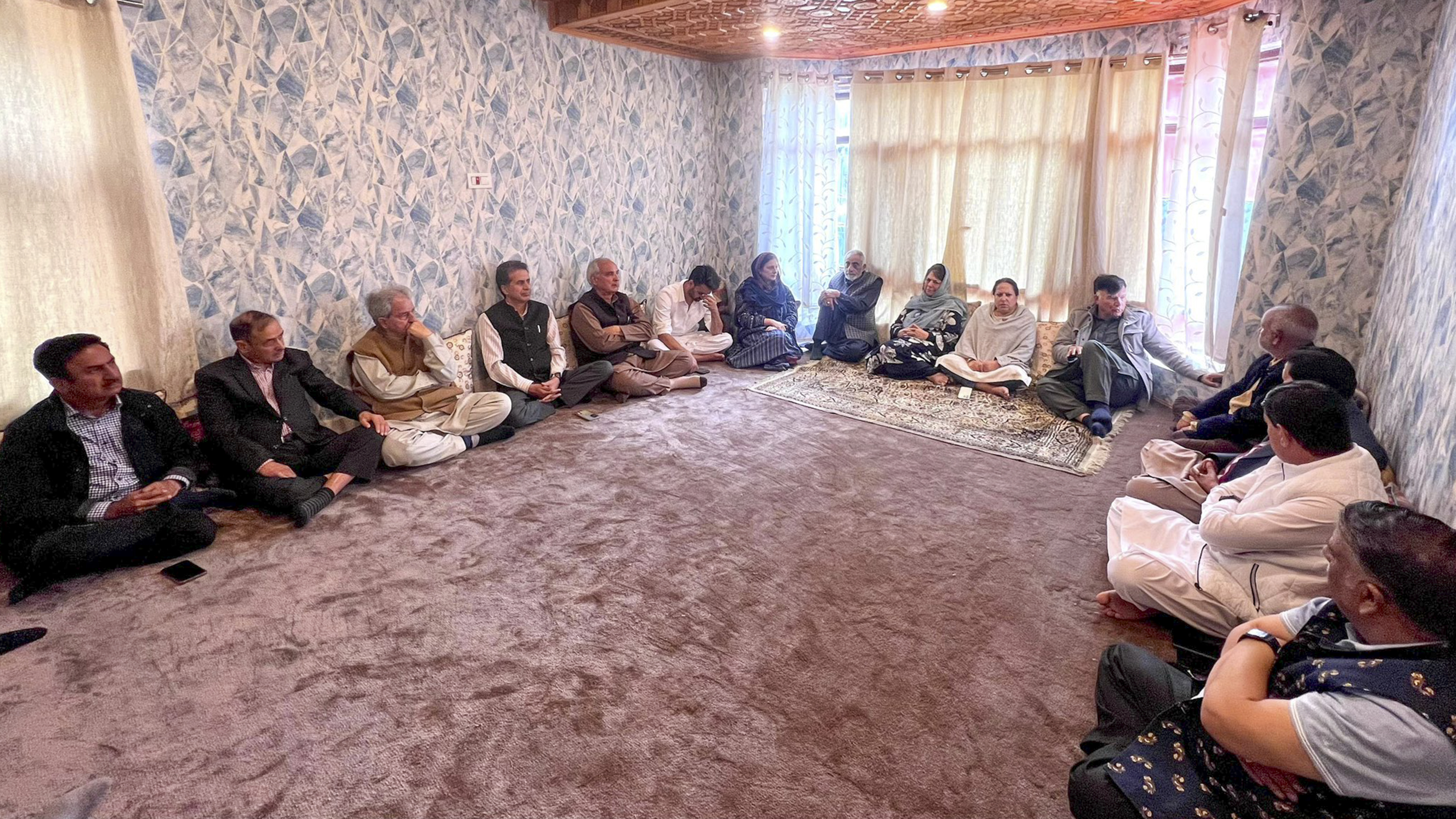 **EDS: THIRD PARTY IMAGE** In this image posted by @MehboobaMufti via X on Thursday, April 10, 2025, PDP Chairperson Mehbooba Mufti presides a party meeting in Srinagar. (@MehboobaMufti via PTI Photo) (PTI04_10_2025_000176B) *** Local Caption ***