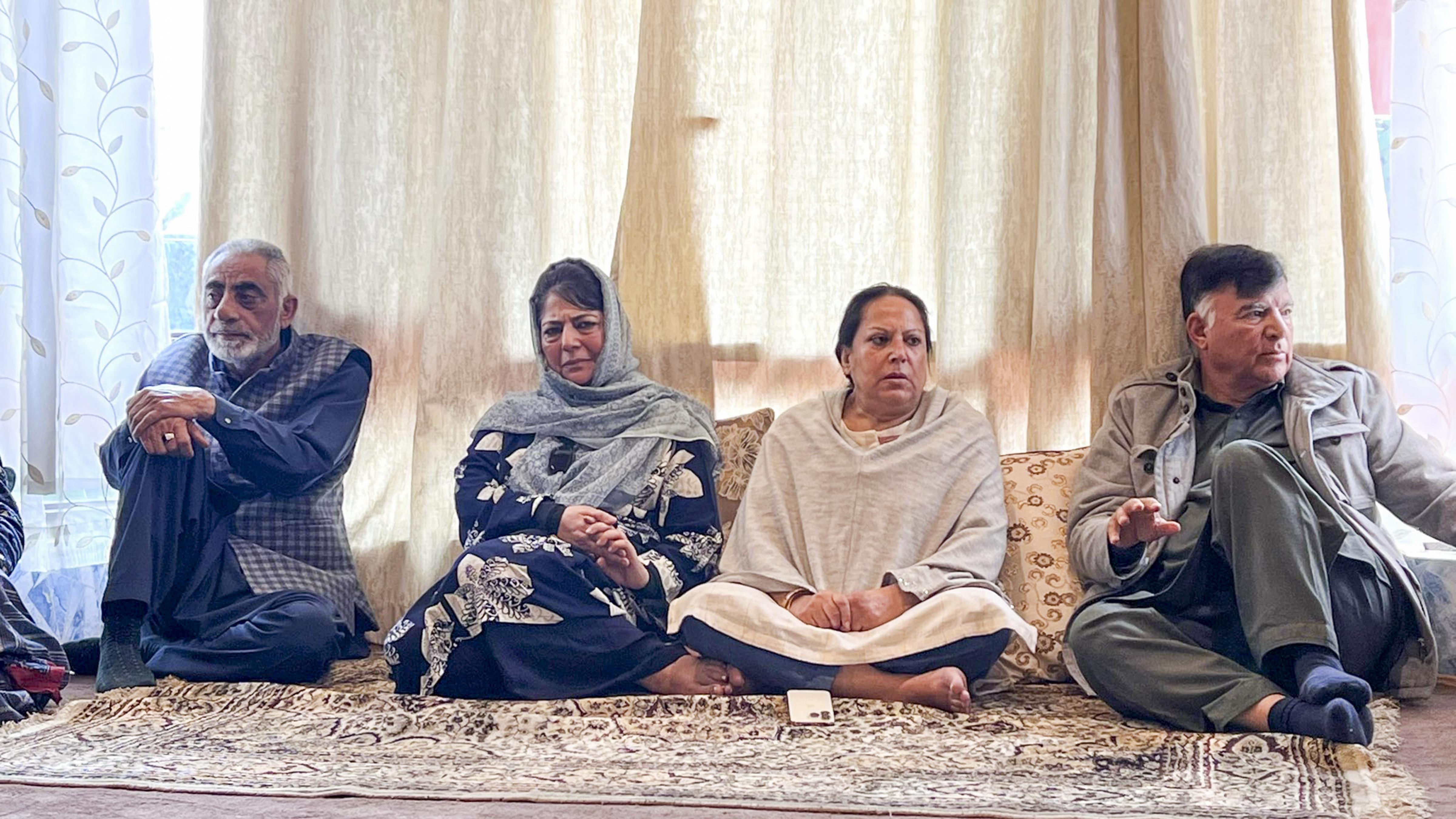 **EDS: THIRD PARTY IMAGE** In this image posted by @MehboobaMufti via X on Thursday, April 10, 2025, PDP Chairperson Mehbooba Mufti, 2nd left, presides a party meeting in Srinagar. (@MehboobaMufti via PTI Photo) (PTI04_10_2025_000175B) *** Local Caption ***