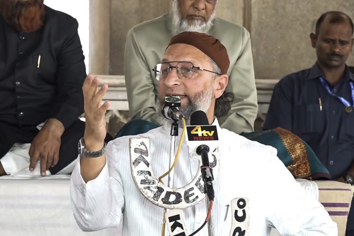 **EDS: SCREENGRAB VIA PTI VIDEOS** Hyderabad: AIMIM chief Asaduddin Owaisi addresses the ‘Jalsa Youm-Ul-Quran’, in Hyderabad, Friday, March 20, 2026. (PTI Photo)(PTI03_20_2026_000355B)