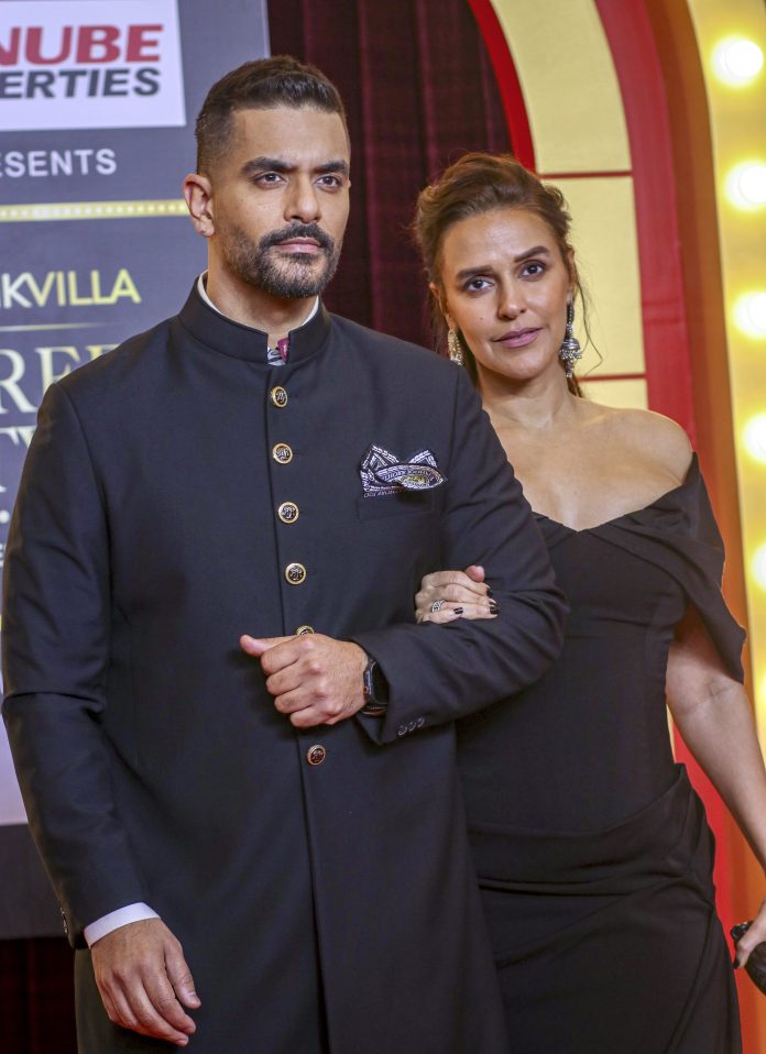 Mumbai: Bollywood actors and couple Angad Bedi, left, and Neha Dhupia attend the ‘Pinkvilla Screen and Style Icons Awards’, in Mumbai, Maharashtra, Wednesday, March 25, 2026. (PTI Photo) (PTI03_25_2026_000441B)