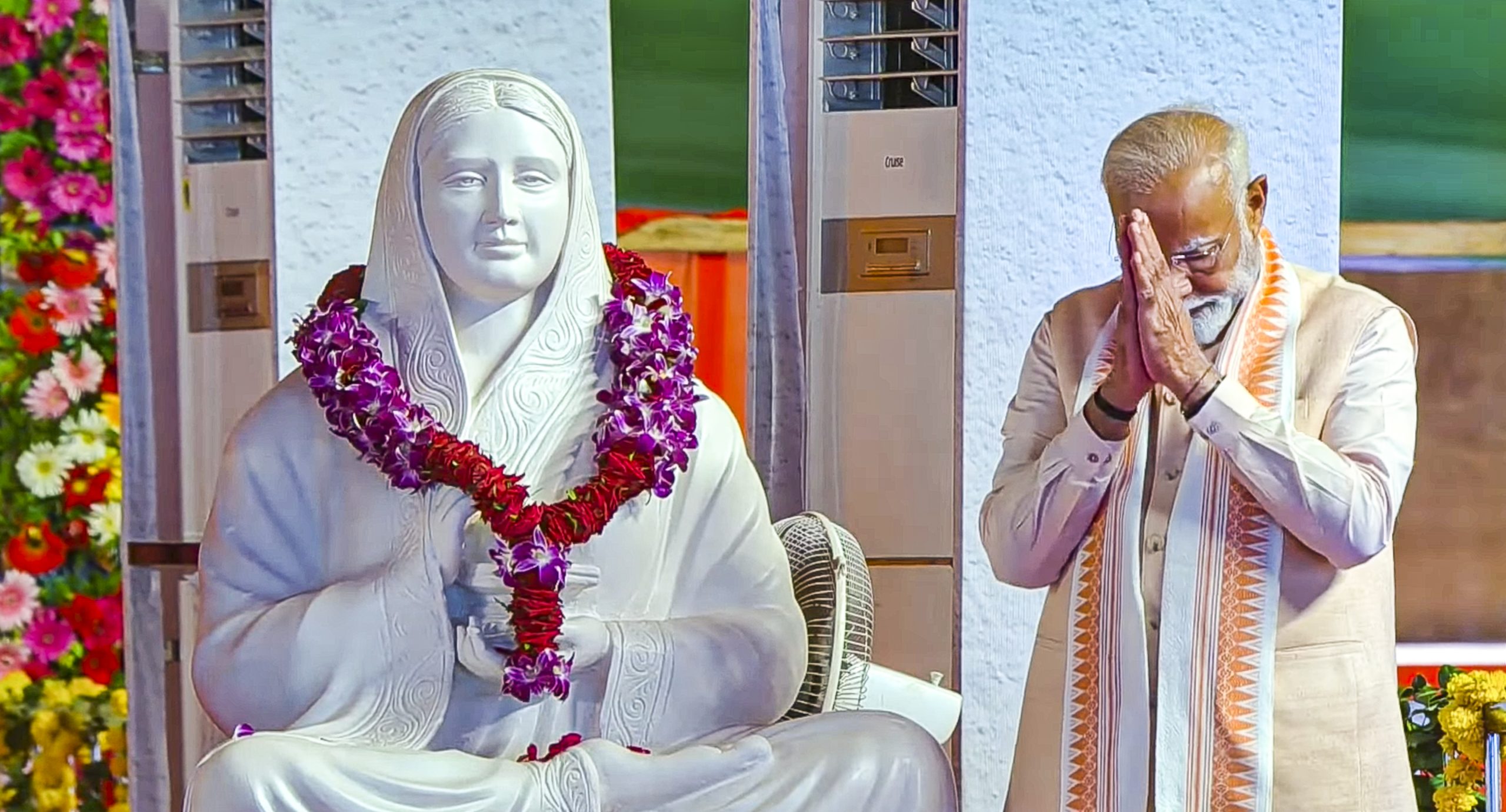 **EDS: THIRD PARTY IMAGE** In this screengrab from a video posted by PM India website on May 31, 2025, Prime Minister Narendra Modi pays tribute to Ahilyabai Holkar on her 300th birth anniversary, at Devi Ahilyabai Mahila Sashaktikaran Mahasammelan, in Bhopal, Madhya Pradesh. (PM India via PTI Photo) (PTI05_31_2025_000097B)