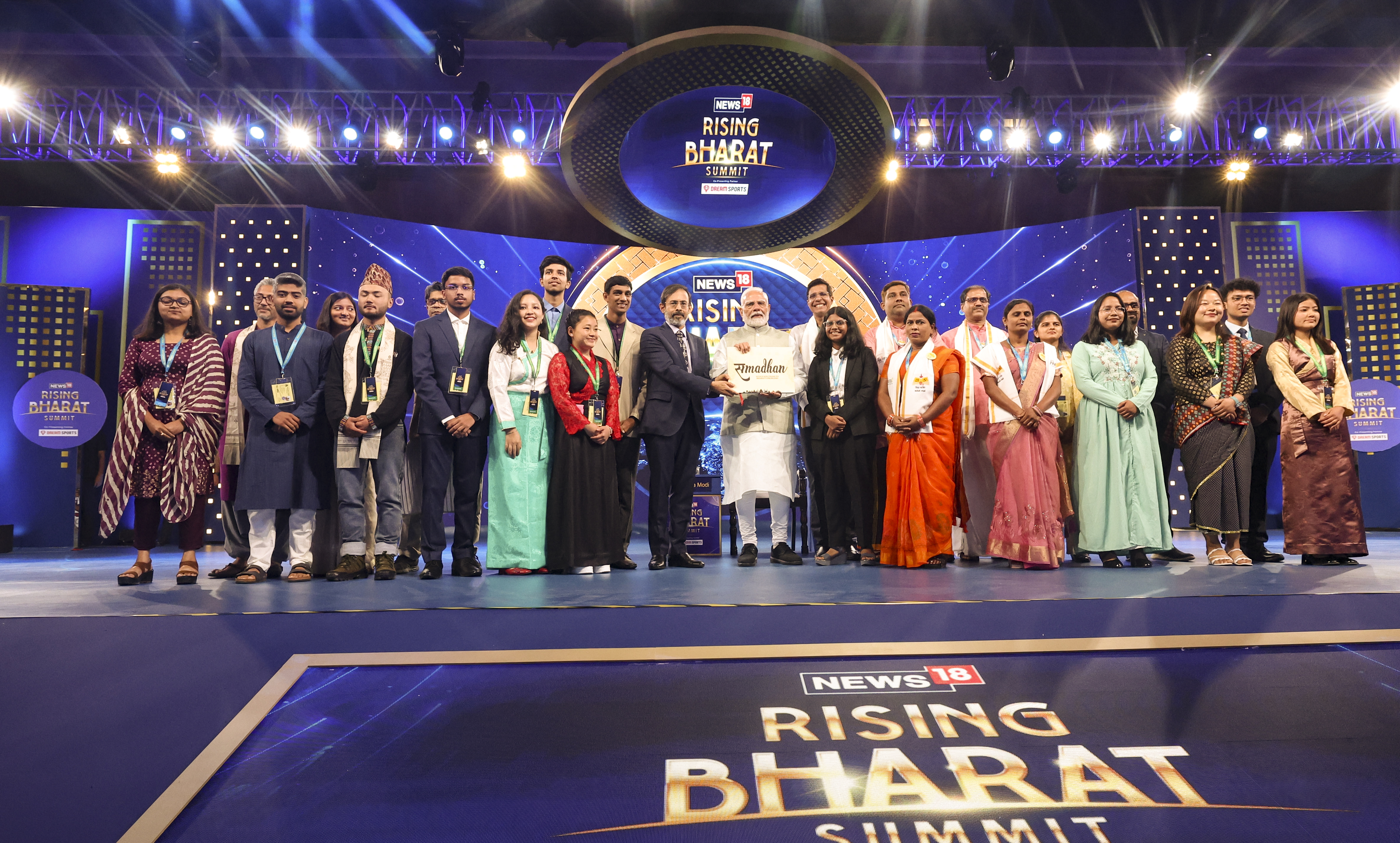 **EDS: THIRD PARTY IMAGE** In this image by PMO on Tuesday, April 8, 2025, Prime Minister Narendra Modi during News18 Rising Bharat Summit, in New Delhi. (PMO via PTI Photo)(PTI04_08_2025_000655B)